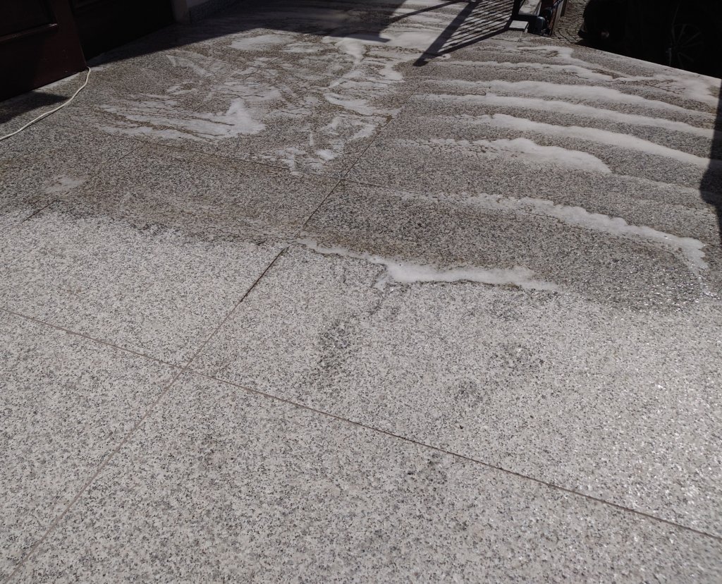 Niezabezpieczony kamień bardzo szybko chłonie zabrudzenia – już przy codziennym użytkowaniu pojawiają się trudne do usunięcia plamy, ptasie odchody czy osady z błota. Brak impregnacji sprawia, że brud wnika głęboko w strukturę materiału, powodując trwałe przebarwienia i zniszczenia 😬