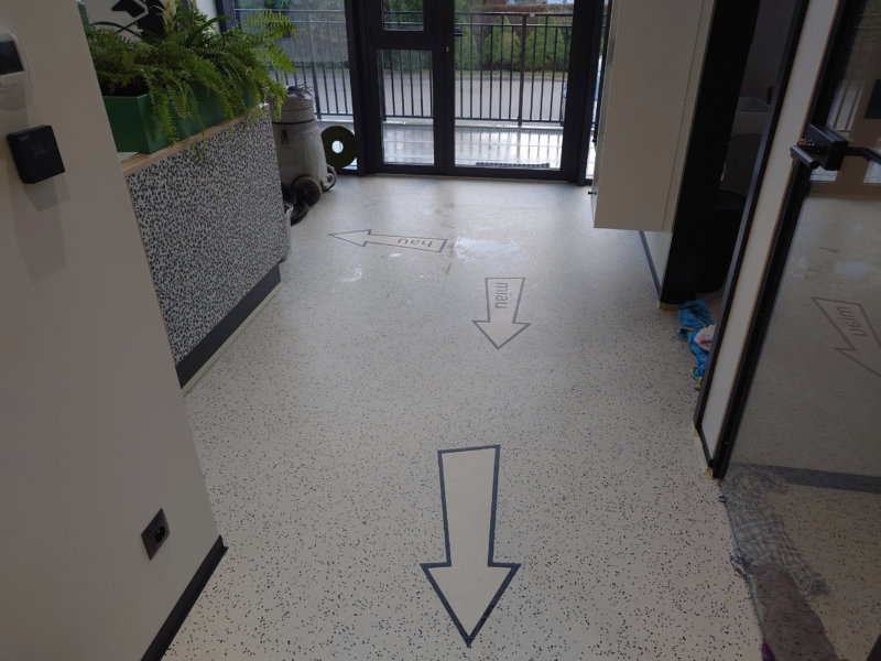 Warto też wspomnieć o doczyszczaniu podług po remoncie. Na posadzkach często pozostają plamy po farbie, tynku czy betonie. Do ich usuwania stosujemy specjalne, profesjonalne płyny, które nie uszkadzają posadzki. Doczyszczamy podłogi z wykorzystaniem szorowarek orbitalnych a na koniec osuszamy odkurzaczami na mokro.  Poniżej prezentujemy zdjęcia z ostatniej realizacji.